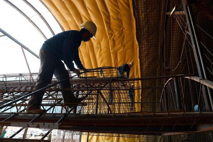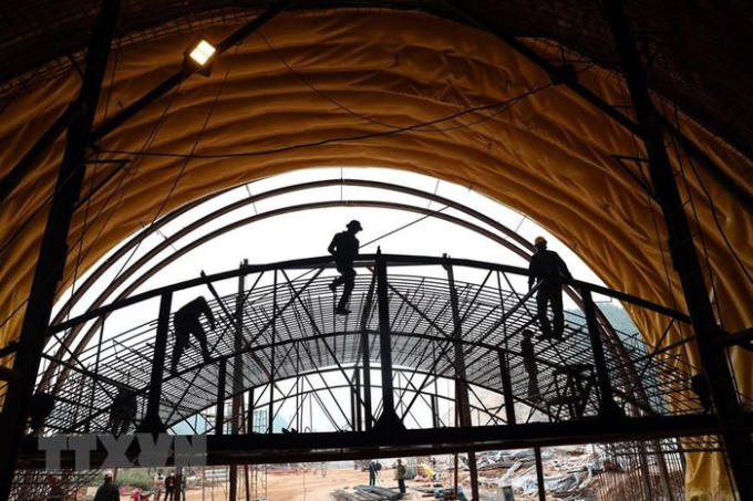 Các nhà thầu đang tranh thủ từng ngày nhằm đảm bảo đúng tiến độ đề ra. (Ảnh: Huy Hùng/TTXVN)