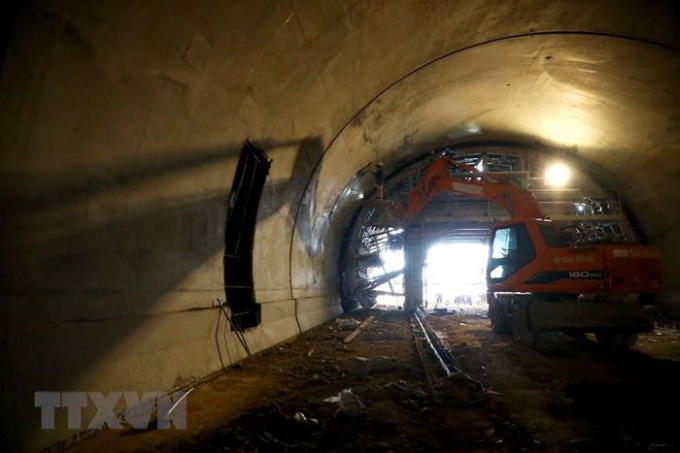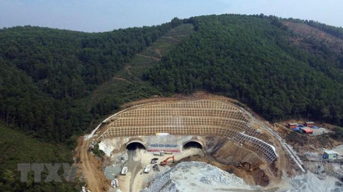 Hầm Tam Điệp có chiều dài 245m được nhà thầu là Tập đoàn Sơn Hải thực hiện thi công và đã được khoan thông hai nhánh hầm vào tháng 6 và tháng 7/2021. (Ảnh: Huy Hùng/TTXVN)