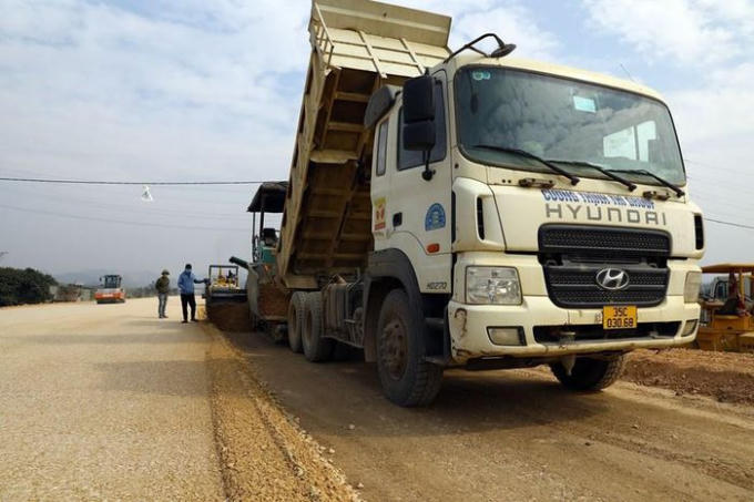 Dải thảm đá dăm trên tuyến tại địa phận huyện Hà Trung (Thanh Hóa). (Ảnh: Huy Hùng/TTXVN)