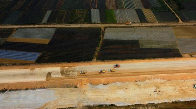 Sau hơn một năm khởi công, dự án cao tốc Mai Sơn-Quốc lộ 45 đã cơ bản thành hình, toàn tuyến đạt gần 45% tổng khối lượng. (Ảnh: Huy Hùng/TTXVN)