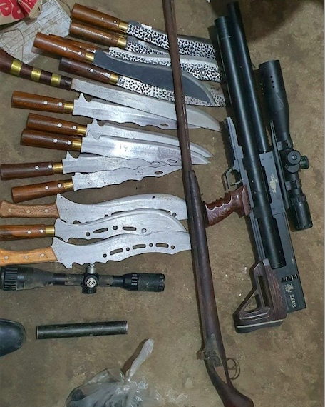 Theo thông tin từ cổng thông tin điện tử Công an tỉnh Thanh Hoá cho biết, vào khoảng 9h ngày 15/3/2024, Tổ công tác của Công an huyện Hậu Lộc phối hợp với Công an thị trấn Hậu Lộc đã phát hiện tại cửa hàng gas của gia đình anh Nguyễn Văn T. có cất giấu nhiều vật nghi là vũ khí, trong đó có 14 vũ khí thô sơ, 2 súng tự chế.