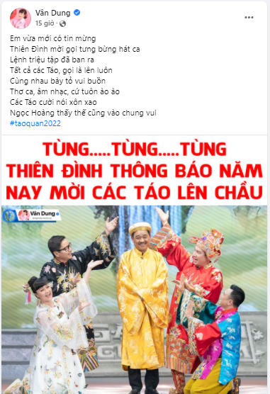 Trên trang fanpage, nghệ sĩ Vân Dung chia sẻ bài thơ với không khí rộn ràng: