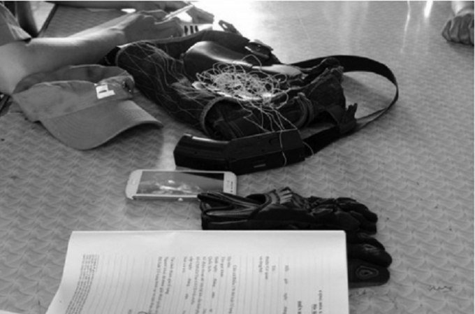 Nhiều dụng cụ, trong đó có súng điện được Hãn chuẩn bị để gây án.