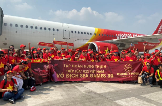 Để cổ vũ cho đội nhà trong trận chung kết tối nay, hơn 60 nhân viên kinh doanh xuất sắc của Tập đoàn Hưng Thịnh cũng đã được đơn vị tài trợ để sang Philippines xem trực tiếp trận đấu và cổ vũ cho đội tuyển.