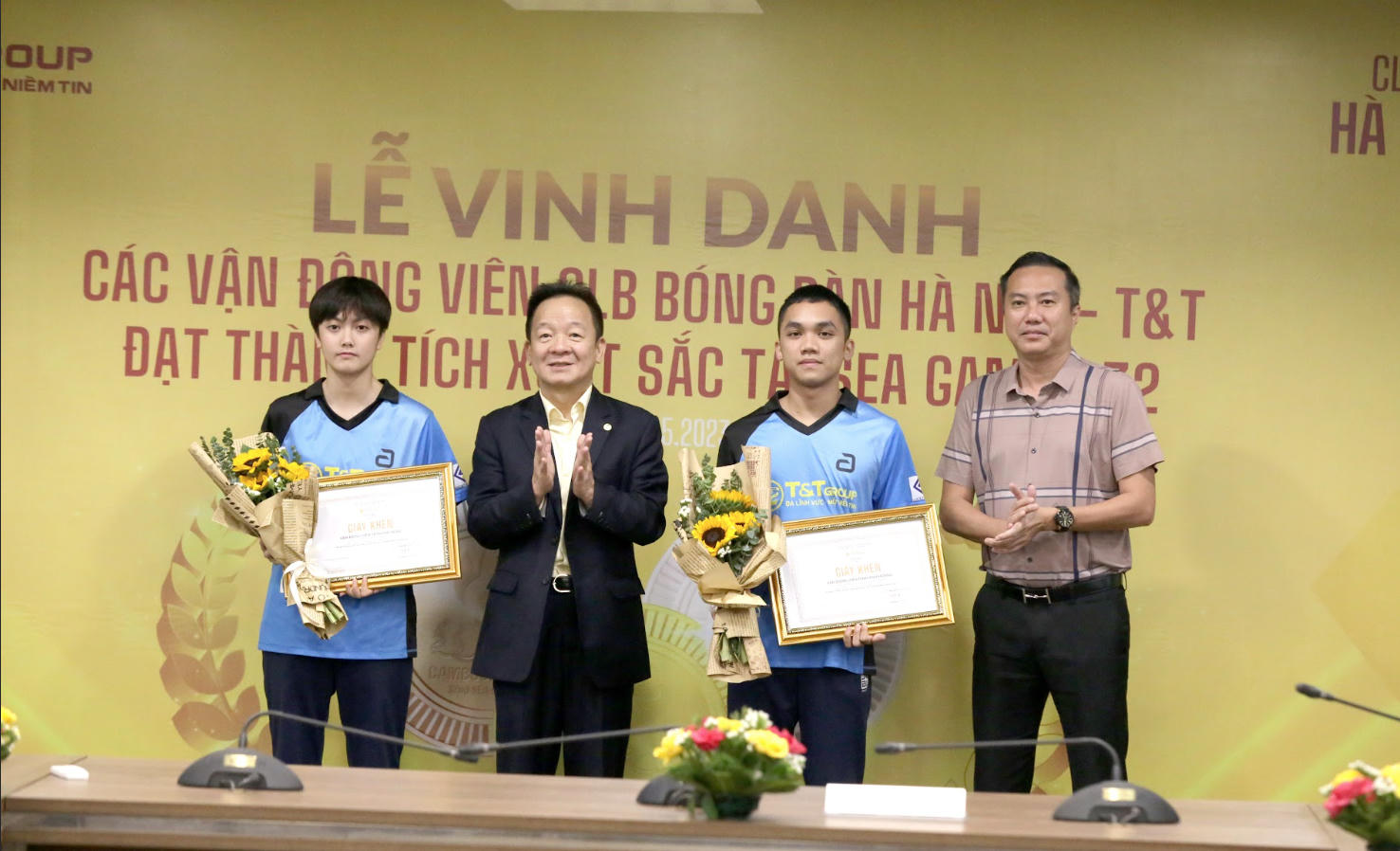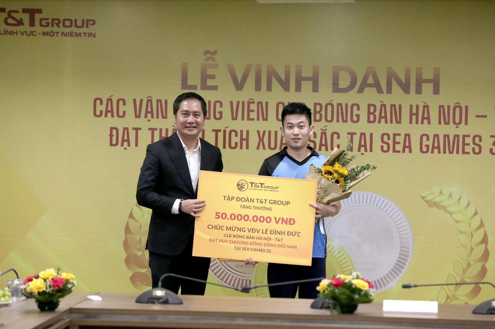 Tập đoàn T&T Group đã vinh danh và trao thưởng 1,15 tỉ đồng cho thành tích xuất sắc của các vận động viên, huấn luyện viên bóng bàn Việt Nam giành được tại SEA Games 32.