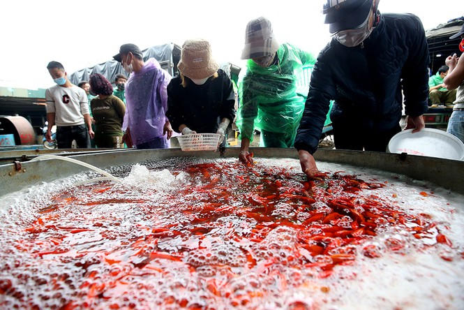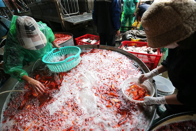 Tấp nập chợ cá lớn nhất Hà Nội trước ngày ông Công ông Táo