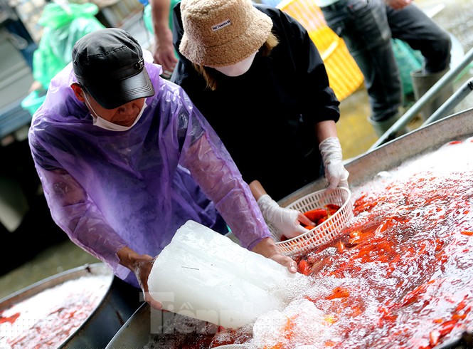 Tiểu thương tăng cường thêm đá lạnh để cho cá khỏe hơn và không bị ngạt khí