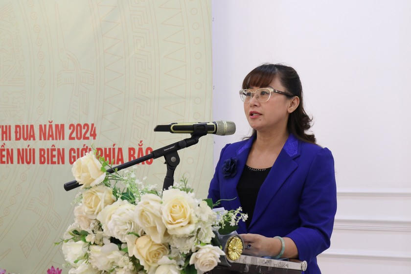 Bà Giàng Thị Dung, Phó chủ tịch UBND tỉnh Lào Cai phát biểu chào mừng hội nghị.