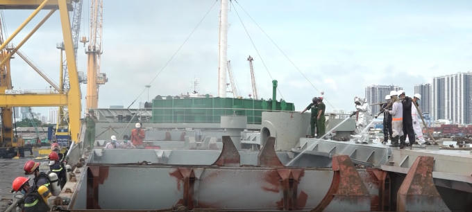 Sáng 4/9, một tàu chở hàng đang neo đậu tại cảng Bến Nghé, Quận 7, TPHCM thì bất ngờ bốc cháy.