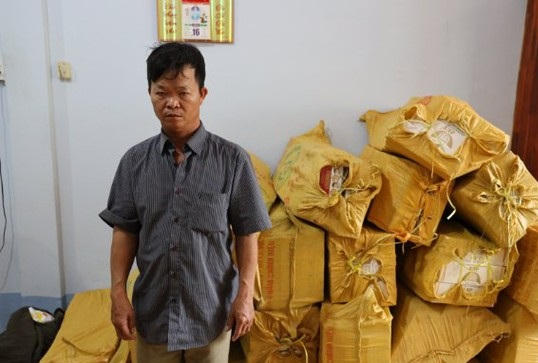 Đối tượng Đào Ngọc Thạch bị bắt giữ cũng tang vật (ảnh Xuân Trung).