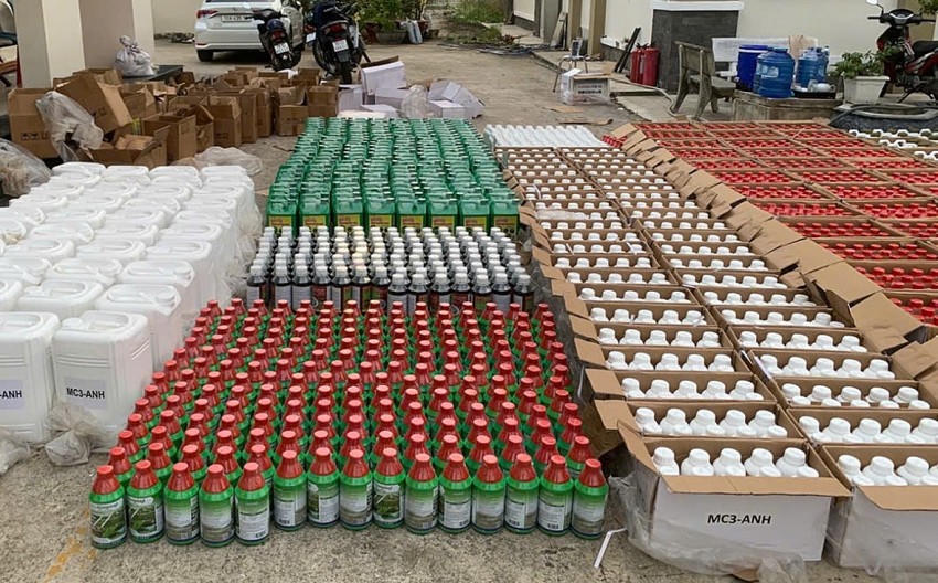 Tổng cộng, lực lượng chức năng đã thu giữ 587kg và 5.293 lít thuốc bảo vệ thực vật, chủ yếu là thuốc diệt cỏ và thuốc trừ sâu không rõ nguồn gốc, cùng nhiều tang vật có liên quan.