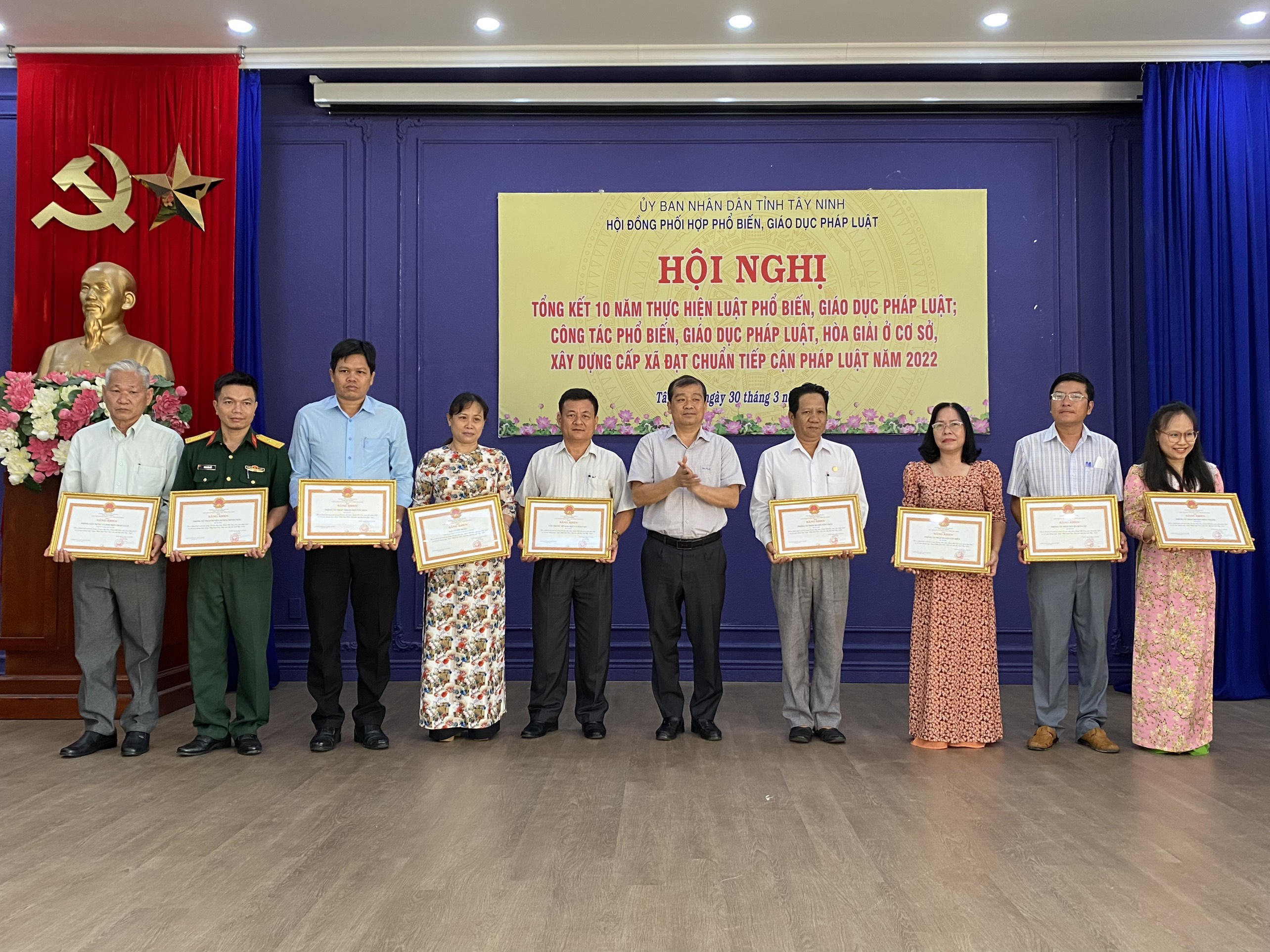 Dịp này, UBND tỉnh đã tặng Bằng khen cho các tập thể, cá nhân có thành tích xuất sắc trong công tác thi hành Luật Phổ biến giáo dục pháp luật và Công tác phổ biến giáo dục pháp luật, hòa giải ở cơ sở và chuẩn tiếp cận pháp luật năm 2022.