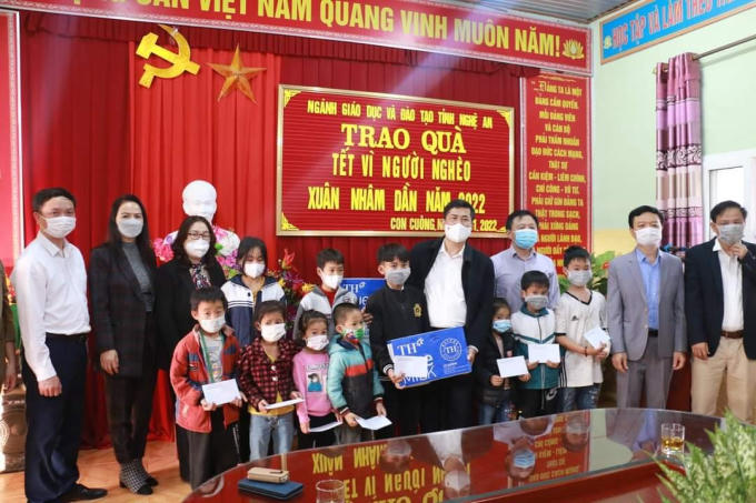 Tại xã Châu Bình (Quỳ Châu), xã Minh Hợp (Quỳ Hợp) đoàn đã trao 180 suất quà và 30 thùng sữa với tổng giá trị hơn 120 triệu đồng. Đây là số tiền đóng góp của ngành, Hội Khuyến học tỉnh, Tập đoàn TH và một số doanh nghiệp, nhà hảo tâm cùng chung tay hỗ trợ.