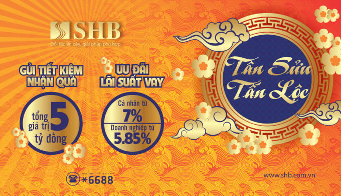 Bên cạnh đó, nhằm đồng hành cùng khách hàng cá nhân mở rộng kinh doanh, hiện thực hóa kế hoạch năm mới, chương trình “SHB – Tân Sửu Tấn Lộc” dành tặng khách hàng cá nhân ưu đãi lãi vay hấp dẫn chỉ từ 7%/năm với khoản vay ngắn hạn và từ 7,59%/năm cho khoản vay trung dài hạn. Ngoài ra, khách hàng vay vốn trung, dài hạn có tham gia bảo hiểm của đối tác SHB được giảm lãi suất 0,2%/năm và tặng 40% phí bảo hiểm năm đầu.