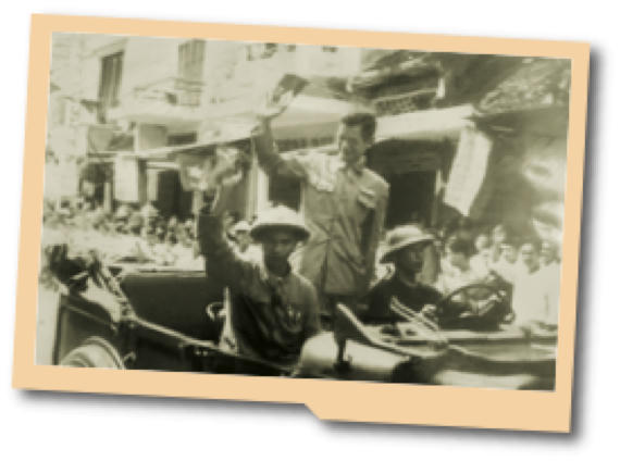 Hình ảnh ông Trần Duy Hưng, Thị trưởng Hà Nội (người thị trưởng đầu tiên dưới chính thể Việt Nam Dân chủ Cộng hòa) đi qua tiệm vải Thái An.