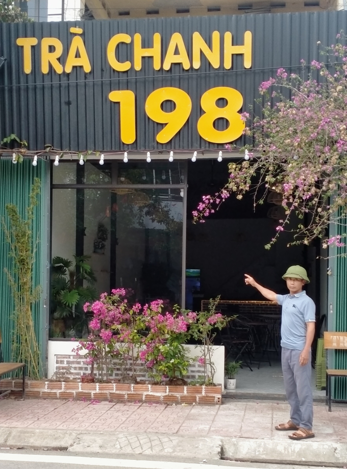 Ông Bản trước Quán Trà Chanh nơi diễn ra cuộc hỗn chiến giữa 2 bên.