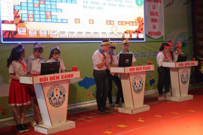 Huyện Quỳnh Phụ thi tìm hiểu pháp luật về an toàn giao thông. Ảnh: Cổng TTĐT Thái Bình