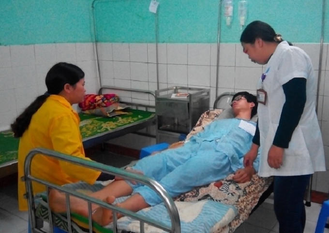 Trao đổi với PV, điều dưỡng viên Khoa ngoại tổng hợp, Vũ Thị Hồng Vân cho biết: Từ hôm cháu vào cấp cứu ở bệnh viện thì đã được các bác sĩ tiếp đón, băng bó vết thương rồi mổ cấp cứu cho cháu. Hiện tại bây giờ cháu cũng đã tỉnh rồi nhưng vết thương vẫn còn đau, mệt và cháu còn bị choáng. Cho đến hôm nay thì đã rút được ống thở ở mũi. Tuy nhiên để cháu trở lại bình thường còn phải theo dõi vết thương ở bên trong nữa. Cháu đã ăn được chút sữa, những ngày trước, cháu phải truyền dịch, đạm, dinh dưỡng qua hệ thống dịch truyền.