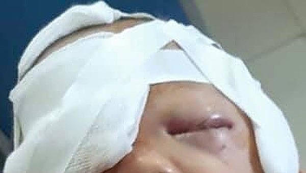 Người nhà cho biết, bé đang chơi một mình trong bếp thì bất ngờ bị chó nhà tấn công. Khi nghe tiếng khóc của bé, gia đình chạy đến xem thì bé đã bị chó cắn rách vùng đầu mặt.
