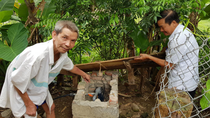 Đến gia đình ông Nguyễn Văn Mỹ chúng tôi được chào đón niềm nở từ xa. Ở nhà chỉ có hai ông bà, tranh thủ nhóm lò nấu rượu, ông Mỹ pha nước trà mời chúng tôi rồi hớn hở khoe: Giờ chúng tôi đã có giếng nước mới, sâu hơn, nguồn nước sạch hơn nhiều so với giếng đào thủ công cũ.