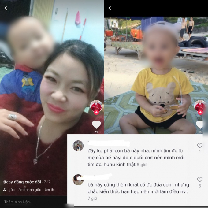 Bên cạnh đó, vào thời điểm trong tháng 7 nghi phạm cũng thường xuyên đăng tải hình ảnh của các em nhỏ và được cư dân mạng bóc mẽ là lấy hình ảnh con của các bà mẹ khác trên mạng đăng lên làm như đó là con mình.
