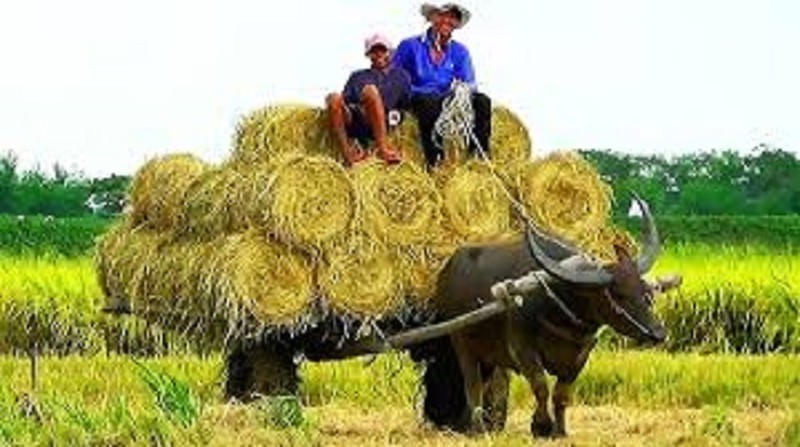 Con trâu giúp người nông dân kéo lúa.