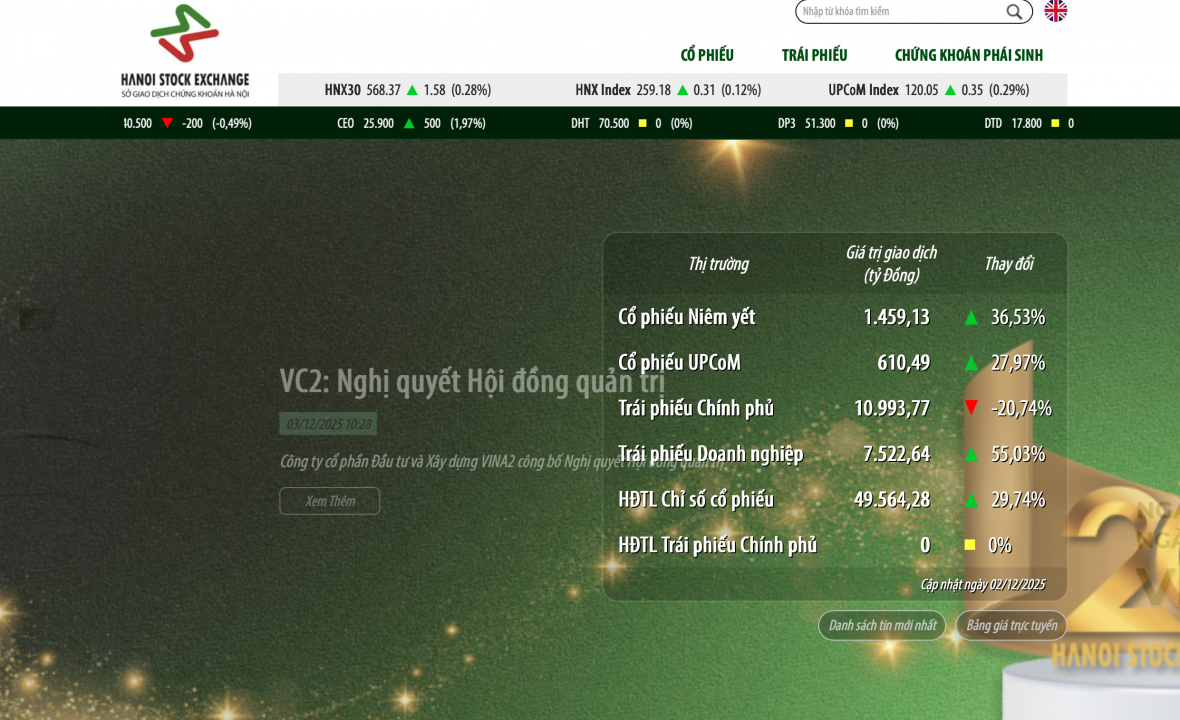 Tháng 11/2025, Sở Giao dịch chứng khoán Hà Nội có 1.184 doanh nghiệp niêm yết và đăng ký giao dịch