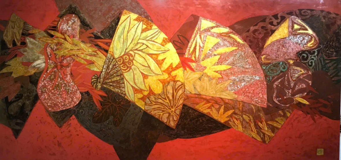 Trong triển lãm có một số tranh họa sĩ dùng hình của quạt giấy sắp xếp theo nhịp điệu. Trên những hình mảng của những chiếc quạt giấy được đặc tả đó, họa sĩ đưa vào tràn ngập hoa lá, gió mây… Tổng thể tác phẩm gợi cho người xem mơ về những ngày xưa cũ.