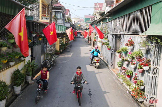 Không khí hân hoan với kết quả Đại hội XIII của Đảng lan vào từng ngõ nhỏ của TP Hà Tĩnh. Ảnh: báo Hà Tĩnh