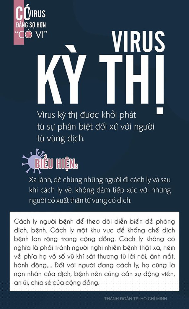 "Virus kỳ thị" với biểu hiện xa lánh, dè chừng người đi cách ly và sau khi cách ly về... là một trong 5 loại "virus" được Thành Đoàn TPHCM cảnh báo người trẻ là đáng sợ hơn cả Covid-19.