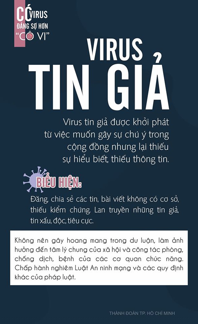 Thành Đoàn TPHCM vừa thực hiện bảng tuyên truyền chỉ ra "5 loại virus" đáng sợ hơn cả Covid-19.