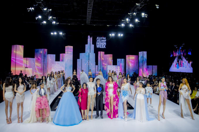 Bộ đôi siêu mẫu - Hoa hậu diện thiết kế ấn tượng và làm vedette trong bộ sưu tập “Sillage” của Ivan Trần tại Tuần lễ Thời trang Quốc tế Việt Nam.