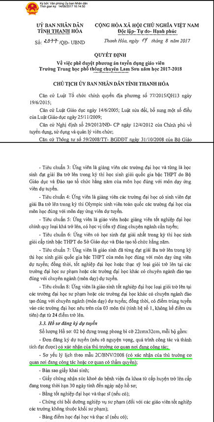 Mặc dù hồ sơ 4 giáo viên không hợp lệ, vẫn được Hội đồng tuyển dụng trường THPT Chuyên Lam Sơn và Sở GD-ĐT Thanh Hóa hợp thức cho lọt qua vòng xét tuyển hồ sơ.