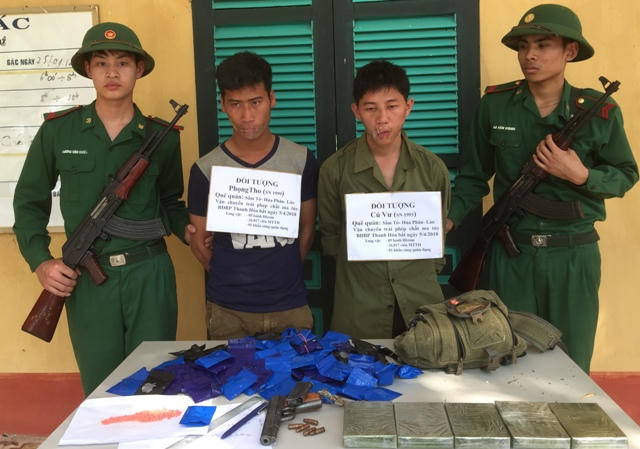 Ngày 6/4, thông tin từ Bộ Chỉ huy Biên phòng tỉnh Thanh Hóa cho biết, đơn vị vừa bắt giữ 2 đối tượng người Lào, đang vận chuyển 5 bánh heroin, 26.817 viên ma túy tổng hợp cùng các tang vật khác gồm 1 khẩu súng K54, 5 viên đạn và 1 điện thoại di động.