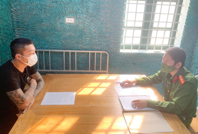 Đối tượng Nguyễn Văn Hoàng tại cơ quan Công an.