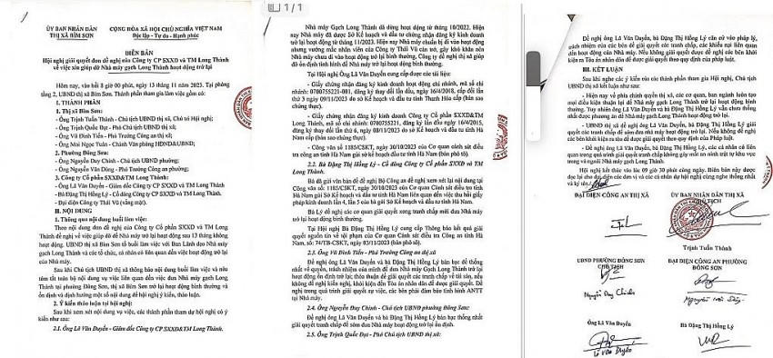 UBND thị xã đề nghị ông Lã Văn Duyến, bà Đặng Thị Hồng Lý giải quyết các tranh chấp để sớm đưa nhà máy hoạt động trở lại. Nếu không đề nghị các bên khởi kiện ra toà để được giải quyết theo quy định của pháp luật…