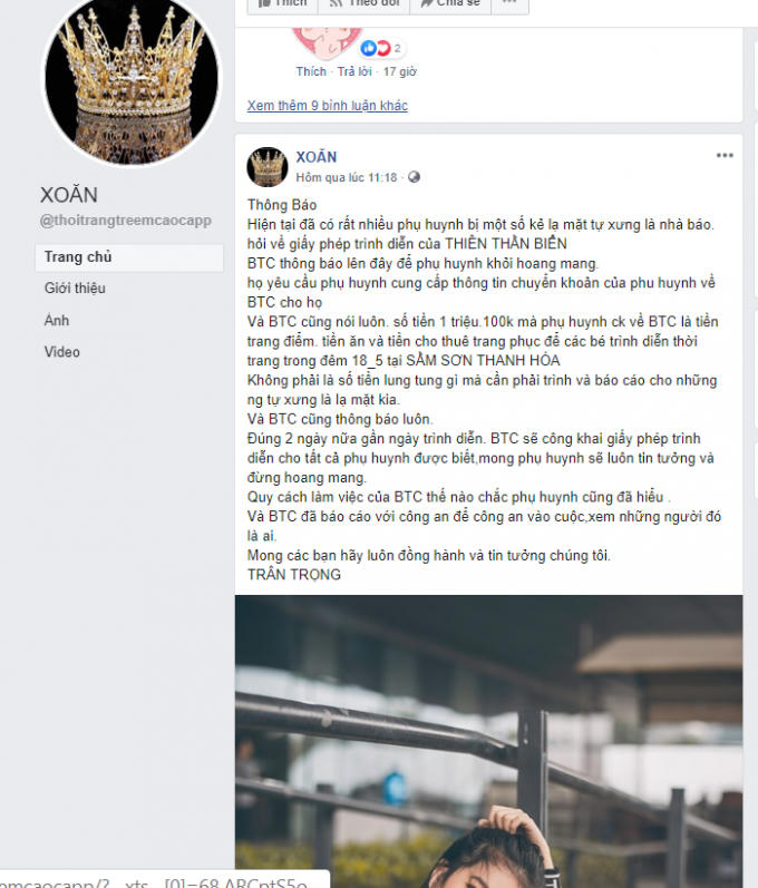 Theo phản ánh cuộc thi Thiên thần của biển 2019 chưa hề được cơ quan chức năng cấp phép nhưng đang quảng cáo rầm rộ trên các trang mạng xã hội và thu hút được đông đảo phụ huynh quan tâm.