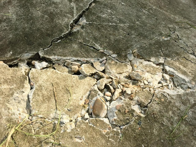 Những khối bê tông dày bị đẩy lên khỏi nền đường.
