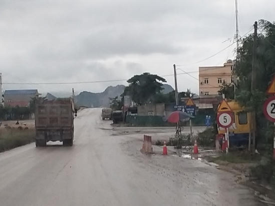 Mặt đường quốc lộ Nghi Sơn – Bãi Trành nhìn rõ dấu hiệu đã và đang bị cày nát, để lại những “ổ voi” khổng lồ kéo dài suốt cả nhiều chặng, cả tuyến đường gập ghềnh gây khó khăn cho các phương tiện lưu thông.