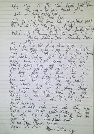 Những lần xảy ra các vụ phá hoại trên, bà Lý đều làm đơn trình báo lên Công an xã và đều được lập biên bản, tuy nhiên chưa tìm ra thủ phạm.