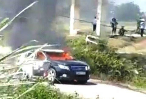 Ôtô chở 4 cán bộ Sở Xây dựng bốc cháy giữa đường.