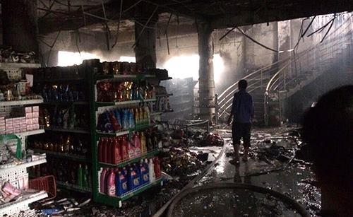 Thời điểm cháy vào đầu sáng, người dân xung quanh phát hiện khói bốc lên từ siêu thị ngùn ngụt, kèm theo những tiếng nổ nhỏ và lửa cháy lan rộng.