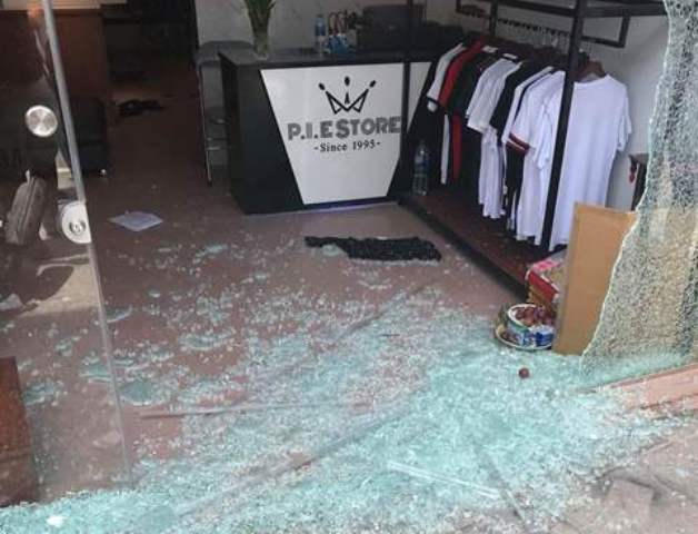 Sau 2 tiếng nổ lớn được cho là tiếng súng của hai thanh niên bịt mặt, một tiệm quần áo sắp khai trương ở đường Lê Hoàn, TP Thanh Hóa bị vỡ tan cửa kính, một nữ nhân viên bị thương nhẹ.