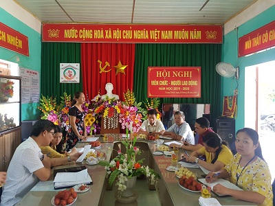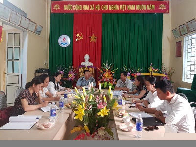 Đoàn kiểm tra làm việc với đại diện Ban giám hiệu trường mầm non Trung Chính.