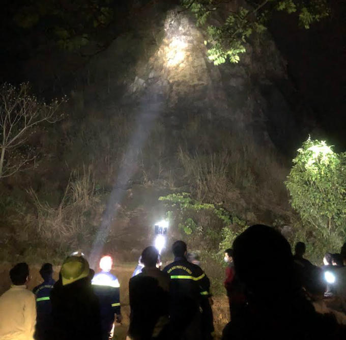 Tại hiện trường, nam thanh niên đang đu bám trên vách núi đá, cách mặt đất khoảng 100m. Trong khi đó, trời tối, vị trí nạn nhân ở trên cao, núi đá gập ghềnh dựng đứng khiến việc tiếp cận nạn nhân gặp không ít khó khăn.