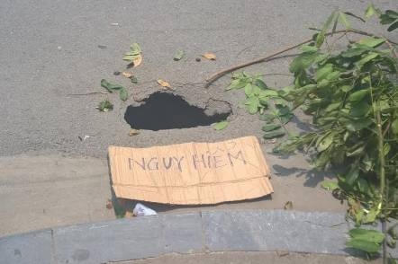Sau khi phát hiện ra ‘’hố tử thần’’ nói trên, người dân đã trình báo lên cơ quan chức năng và đặt biển báo nguy hiểm và bẻ một số cành cây để trên bề mặt hố nhằm cảnh báo cho người tham gia giao thông qua đây.
