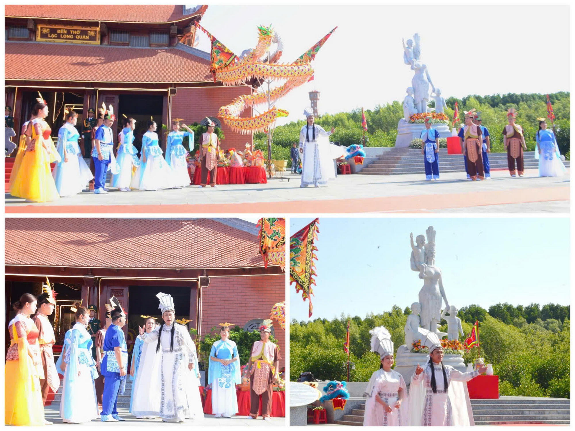 Điểm nhấn nghệ thuật của phần lễ là hoạt cảnh do Đoàn Cải lương Hương Tràm trình diễn, tái hiện truyền thuyết Lạc Long Quân – Âu Cơ, góp phần làm sống động không gian văn hóa tâm linh và khơi dậy niềm tự hào dân tộc trong lòng người xem.