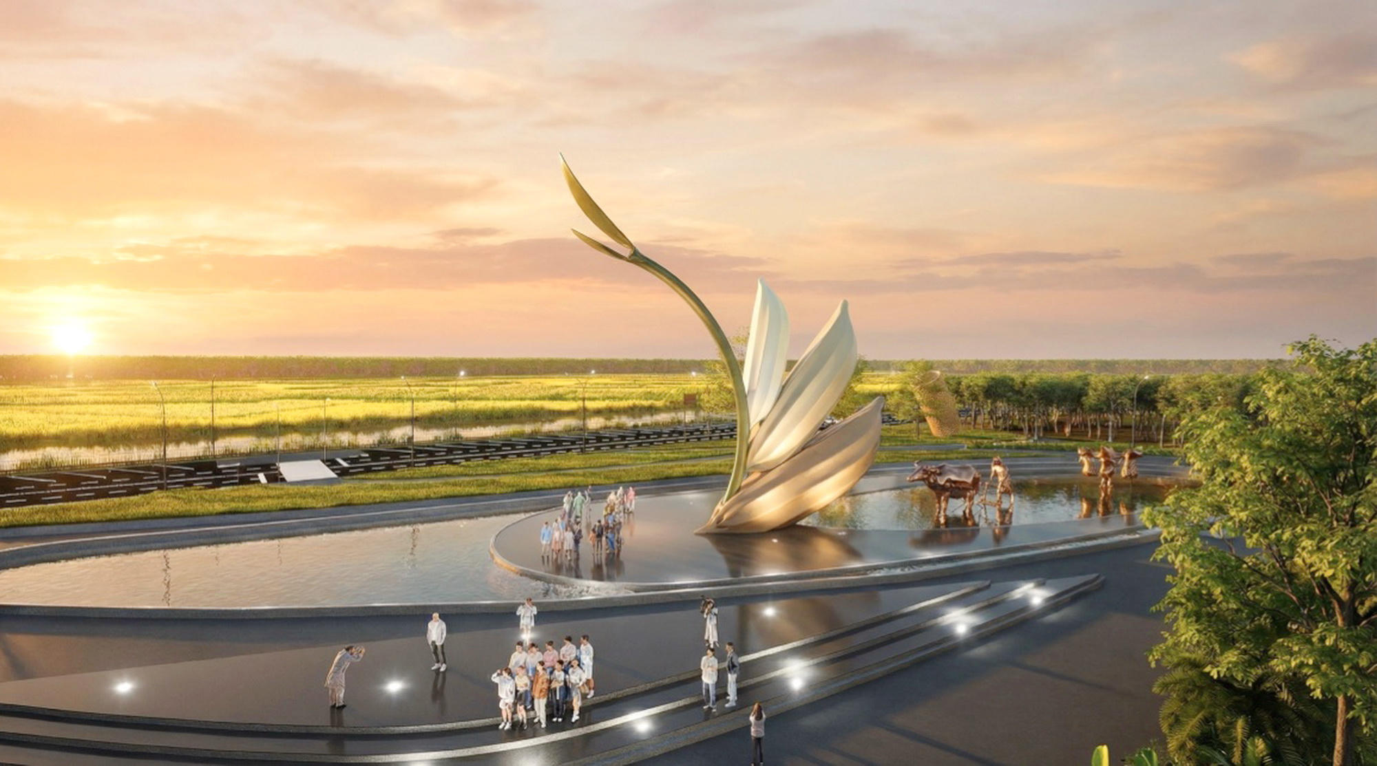 Một điểm đặc biệt của dự án là xây dựng Biểu tượng Ba hạt lúa quy mô lớn nhằm tôn vinh nghề trồng lúa nước. Ba hạt lúa tượng trưng cho ba giai đoạn sinh trưởng của cây lúa – ngậm sữa, chín vàng và nảy mầm – thể hiện chu kỳ phát triển, thành quả lao động và sức sống bền bỉ của nghề nông cũng như của dân tộc Việt Nam.