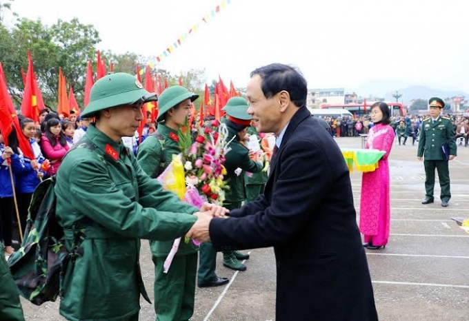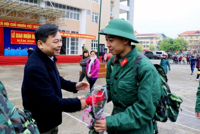 | Đồng chí Triệu Đức Lân Bí thư thành phố, chúc mừng các tân binh. |