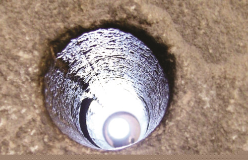 Cận cảnh của một lỗ khoan trên một phiến đá.